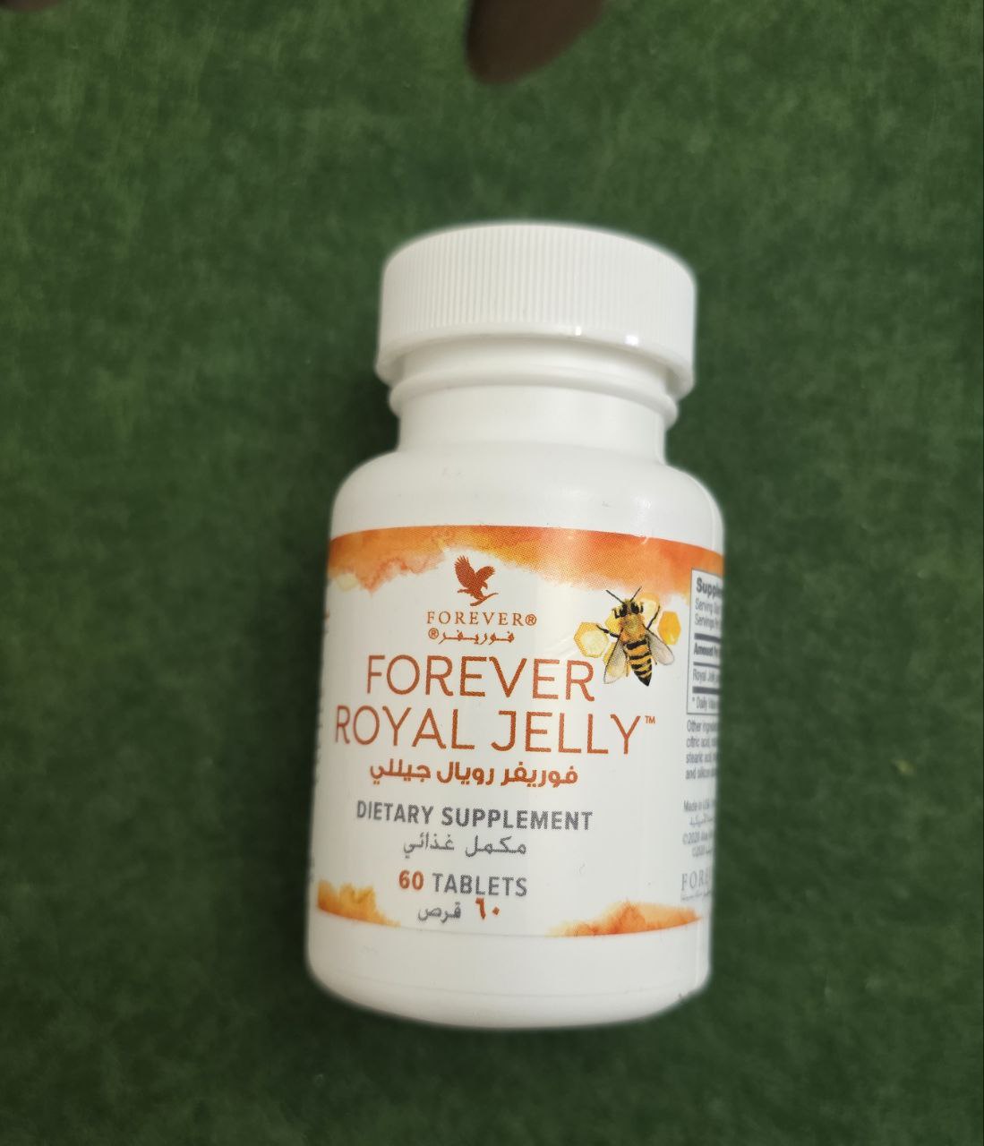 فوراور رویال ژلی Forever Royal Jelly ازکندویعسل تهیه میشود و بلافاصله منجمد و خشک میشود تا آب اضافی از آن گرفته شود و تمامی ویتامینها ، موادمعدنی، آنزیمها وکوآنزیمها باقی بماند . ژل سلطنتی یا رویال ژلی دارای هرهشت اسیدآمینه اصلی به علاوه 10 اسید آمینه فرعی بوده و همچنین دارای مقادیر قابل توجهی مواد معدنی شامل :کلسیم،مس،آهن،فسفر،پتاسیم،سیلیکونو گوگرد است و حتی اسیدنوکلئیک هم در آن وجود دارد. ژلرویال یک ترشح شیری است که از غدد حلق زنبور عسل نشات میگیرد. مشخص شده است که در انسانها این ماده به طرز فوقالعادهای ایجاد سَرزندگی و نوسازی سلولی میکند.